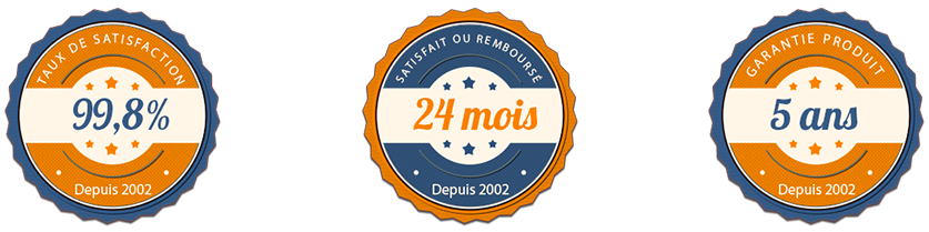 Le produit est satisfait ou remboursé 24 mois et la garantie est de 5 ans.